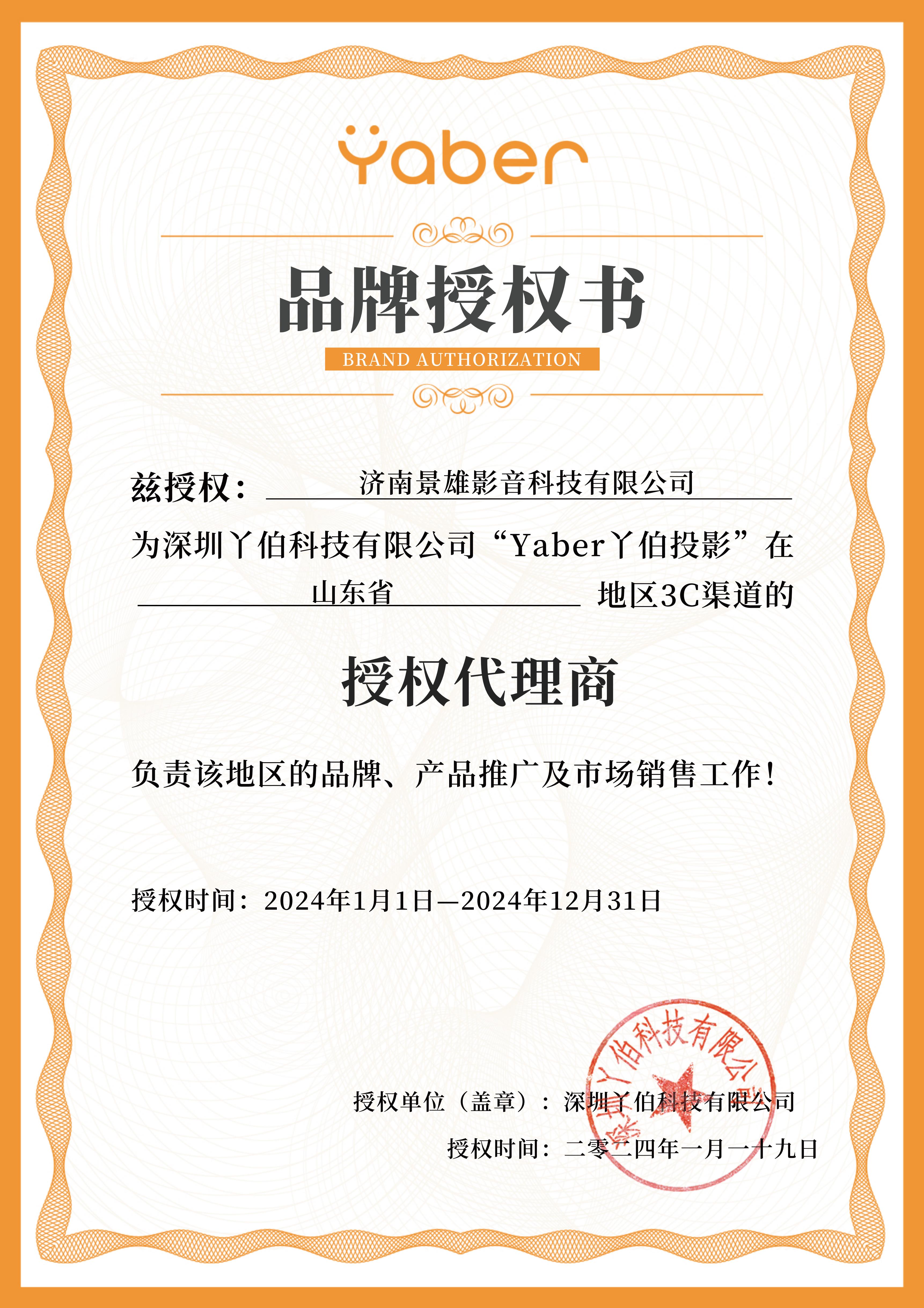 Yaber丫伯品牌2024年授權牌